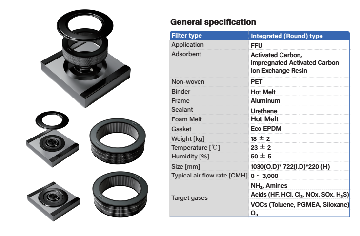 공기청정기 필터로는 집진필터, 탈취필터, 각종 기능성필터, 가습필터, 프리필터를 생산하고 있습니다.